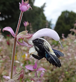 Mit dem Verblühen des Löwenzahns und der Rapsfelder und dem Mähen der Wiesen entsteht das nahrungsarme “Juniloch“. Wer “Bienen- oder Nützlingspflanzen“ kultiviert, hilft Schmetterlingen, Bienen und weiteren Insekten die “Hungerperiode“ zu überbrücken. Gleichzeitig kann in jedem Garten mit einfachen Kleinstrukturen wie Steinhaufen, Totholz, vegetationsarmen Bodenstellen und Insektenhotels Lebensraum für die unersetzbaren Bestäuberinnen geboten werden. Ideal ist, auf Pflanzenschutzmittel zu verzichten oder sie aufs Nötigste zu beschränken. Oft sind spezielle Bienen auf bestimmte Pflanzen angewiesen. Unwiderstehlich sind die Blüten der Muskateller-Salbei für die Holzbienen, die schwarzen Riesenbrummer.