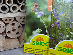 - Das Nonplusultra sind die heimischen Wildpflanzen. Wildblumen sind seit eh und je die Nahrungsgrundlage der Bienen und Schmetterlinge. Im Select-Sortiment der ausgewählten Wildblumenmischungen – mit Samen von Schweizer Ökotypen – finden nicht nur Bienen, sondern auch Wildbestäuber wie Hummeln und Schmetterlingsarten ihre Lebensgrundlage. Wer eine Gartenfläche, einen Balkonkübel längerfristig diesen Insekten als Nahrungsquelle zur Verfügung stellt, sät die einheimischen, mehrjährigen Select-Samenmischungen: Wildblumen für Schmetterlinge und Bienen, Wildblumen der Trockenwiese.