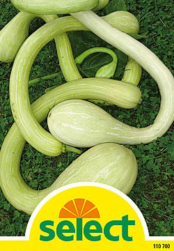 Beim rankenden Keulen-Kürbis ‘Trombolino‘ – Trombolino bedeutet „kleine Trompete“ – handelt es sich um eine altbewährte italienische Züchtung. Je nachdem wie man diese Kürbis-Sorte wachsen lässt, bekommt sie eine andere Form. Beim hängenden Wuchs ergeben sich gestreckte Früchte, also „Keulen“. Wachsen sie hingegen am Boden liegend, rollen sie sich schlangenförmig („Trompeten“).Das Fruchtfleisch schmeckt hervorragend nussig. Junge, ca. 10 – 25 cm lange Früchte können roh oder gedämpft wie Zucchini genossen werden. Ausgereifte Keulen-Kürbisse zeichnen sich durch eine sehr lange Halt- und Geniessbarkeit aus.