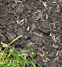 Auf den vorbereiteten Boden wird der Rasensamen gesät und das Saatgut anschliessend gleichmässig dünn (max. 0.5 cm) mit einer Schicht Rasenerde bedeckt. Anstelle von Rasenerde kann man auch normale Gartenerde, angereichert mit etwas Sand und Kompost, verwenden. Die Erde fest andrücken oder grössere Stellen allenfalls walzen.Damit die heiklen Sämlinge nicht austrocknen, muss der Boden in der Keimphase stets feucht sein. Je nach Witterung beziehungsweise starker Trockenheit kann mehrmaliges Wässern pro Tag notwendig werden.