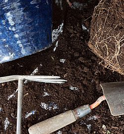 Idealerweise befeuchtet man den Wurzelballen vor dem Umtopfen, denn so lässt er sich leichter aus dem Gefäss herauslösen. Hilfreich ist auch, wenn man zuerst mit einem Messer innen an der Gefässwand entlangfährt. Danach wird die oberste Erdschicht weggenommen und das Wurzelgeflecht mit einer Harke oder einem scharfen Messer etwas aufgeraut.Ins bestehende oder ins neue Gefäss kommt ganz unten eine ca. 5 cm dicke Drainageschicht. Diese kann aus Tonscherben, Kies, Blähton oder Greenplant Outdoor Granulat bestehen. Aufgefüllt wird mit einer Kübelpflanzenerde so weit, bis der Wurzelballen ca. 5 cm unter dem Gefässrand zu stehen kommt. Danach wird ringsum aufgefüllt und auch eine 1 – 2 cm dicke Schicht des Substrats auf den Wurzelballen gegeben. Der Kübelpflanzerde fügt man am besten gleich einen Universal-Langzeitdünger zu. Damit hat die Pflanze die ganze Saison Nahrung und wächst regelmässig. Zum Schluss die Erde leicht andrücken und reichlich wässern.