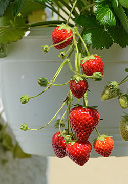 Sie haben keinen Garten? Oder sind die Gartenbeete, die Fenstersimse und der Balkon bereits anderweitig besetzt? Auf den Genuss selbst kultivierter Erdbeeren müssen Sie trotzdem nicht verzichten. Die Lösung: eine „Hängeplantage“ an sonniger Lage.