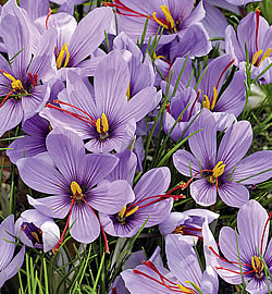 Safran-Krokus (Crocus sativus)Der Safran-Krokus benötigt einen vollsonnigen Standort in Rabatten, Steingärten, Gefässen oder auch im Rasen. Je nach Pflanzzeit im August erscheinen die Blüten, deren getrockneten roten Blütennarben wir als aromatische Würze ernten können, von September bis Oktober. Die übrigen Pflanzenteile sind giftig. Wird der Safran-Krokus zu spät gepflanzt, muss man sich ein Jahr lang gedulden bis zur Blüte.