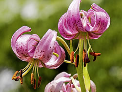 Türkenbundlilie (Lilium martagon)Sie mögen einen halbschattigen bis sonnigen Platz mit Bodenschatten und einen humusreichen Kalkboden. Eine Pflanzzeit im August bringt sie bereits im kommenden Herbst zur Blüte. Türkenbundlilien eignen sich gut zum Verwildern.