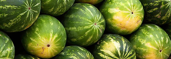 Wassermelone: Ein erster Hinweis für Reife ist der hohle Klang beim Draufklopfen. Dies gilt für alle Melonen. Wassermelonen ändern ihre Farbe mit zunehmender Reife von gelb nach grün. Dabei bedeutet ein glänzendes Grün noch Unreife. Erst ein mattes Grün mit netzartigen Gelbanteilen zeigt an, dass die Frucht gut gereift ist. Übrigens ist ein gelber Fleck auf einer Seite der Melone positiv zu werten. An der Stelle, an der die Melone auf dem Boden lag, bleibt ein solcher Fleck zurück. Dies bedeutet, dass die Melone auf dem Feld ausreifen durfte und nicht unreif geerntet wurde. Wassermelonen reifen nach der Ernte nicht nach.