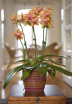 Im Fachhandel gibt es spezielle Blattpflegesprays für Zimmerpflanzen (z. B. von Luwasa oder Blattpflege für Orchideen von Gesal). Sie spenden Feuchtigkeit, hemmen Kalk- und Staubablagerungen und verleihen den Blättern einen seidigen Glanz. Letzteres kann man auch erreichen, indem man die Blätter mit Milchwasser abwischt. Wichtig: Vor dem Anwenden eines Blattpflegesprays die Pflanze von Staub befreien. Nicht zu nahe sprühen und junge, zarte Blätter sowie Blüten auslassen.Erhältlich sind im Weiteren Blattpflegetüchter für Orchideen (Gesal). Mit ihnen lassen sich Staub, Kalk- und Wasserflecken beseitigen, und sie geben den Blättern einen schönen Glanz. Diese Tücher können auch bei hartlaubigen Zimmerpflanzen wie Gummibaum, Drachenbaum, Feigenbaum, Schefflera, Zamie oder Bogenhanf angewendet werden.