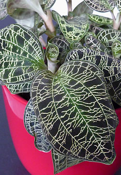 Wenige Monate später: Die Juwelorchidee blüht nach wie vor (noch) nicht, aber die krautige Pflanze gedeiht grossartig und hat sich inzwischen zu einem echten Hingucker gemausert. Beim üppigen sattdunkelgrünen Blattwerk kommen die an weihnachtlichen Goldglimmer erinnernden Blattnerven ausserordentlich stark zur Geltung. Unfassbar, was die Natur alles hervorbringen kann! Sollte die Orchidee später einmal blühen (dies wird am ehesten im Frühjahr sein), werden aufrechte Rispen viele kleine braunweisse Blüten tragen. Falls es nicht klappt mit der Blüte, erfreue ich mich einfach weiterhin am wunderschönen aussergewöhnlichen Blattwerk.