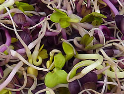 • Rotkabis: Sehr dekorative blauviolette Sprossen mit mild-würzigem Rotkohl-Aroma.