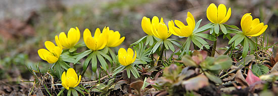 Stimmen die Bedingungen, können sich mit der Zeit im Garten jeweils von Februar bis April wunderschöne Blumenteppiche bilden. Der Winterling ist mehrjährig, frosthart und wächst aus unterirdischen knollig verdickten Rhizomen. Im Juni zieht die ganze Pflanze ein: Oberirdisch stirbt sie ab und überdauert das restliche Jahr in den unterirdischen Knöllchen. Der Winterling liebt einen lehmig-humosen eher feuchten und nährstoffreichen Boden in der Sonne oder im Halbschatten. Auch im Sommer, wenn vom Winterling nichts mehr zu sehen ist, sollte der Boden nicht zu trocken sein. Ideal ist ein Standort unter Laub abwerfenden Gehölzen wo auch keine Bodenbearbeitung stattfindet und der Winterling sich ungestört ausbreiten kann. Will er sich nicht so richtig entwickeln, liegt das oft am zu trockenen Standort.