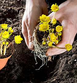 Mehr Erfolg mit Winterlingen hat man meist, wenn man im Frühling fertige Pflanzen kauft und diese in den Garten setzt. Er breitet sich über Brutknollen oder Samen, die von Ameisen verschleppt werden, selbst aus. Hat der Winterling sich einmal im Garten angesiedelt, ist es kein Problem, nach der Blüte Knöllchen aus dem Boden zu holen und an weiteren Stellen im Garten zu pflanzen. Nur sollte man sie gleich nach dem Ausgraben wieder einpflanzen, damit sie nicht austrocknen.Wyss Samen und Pflanzen AG, Christine Beuret