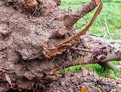 Die Schadbilder gut verankerter Tiefwurzler wie Kiefer, Lärche, Esche, Eibe, Eiche, Kastanie oder Walnuss zeigen sich meist in abgebrochenen Ästen oder geknickten Stämmen. Sogenannte Flachwurzler, zum Beispiel Fichte, Birke, Erle, Tanne, Hainbuche, Weide oder Magnolie, werden hingegen häufig samt Wurzelballen aus der Erde gehoben und stehen nun schräg oder sind ganz umgelegt.