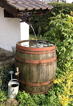 Die allereinfachste Variante ist, einen Bottich aufzustellen und es hineinregnen zu lassen. Dekorativ kann auch ein altes Weinfass aussehen. Etwas gezielter ist eine Regentonne mit einem einfachen Rohr, welches das Wasser in die Tonne befördert. Diese Möglichkeiten sind sehr kostengünstig; die Preise reichen von weniger als 100 bis ein paar 100 Franken, je nach Grösse und Zubehör. Man muss einfach aufpassen, dass die Behältnisse nicht überlaufen und dadurch eine Überschwemmung verursachen. Es gibt heutzutage nicht nur die gewöhnlichen grünen Tonen, sondern auch Behälter in Form von Amphoren, Regenspeicher in Steinmaueroptik oder Tanks, die wie ein Baumstamm aussehen. Alle diese Methoden sind geeignet, wenn das Regenwasser lediglich zum Bewässern des Gartens eingesetzt wird.Wer das Wasser zur WC-Spülung oder fürs Wäschewaschen nutzen will, muss einen grösseren Aufwand betreiben. Ein unterirdischer Tank mit Filter, Pumpe, Schläuchen und weiterem Zubehör kann schnell in einige Tausend Franken gehen.