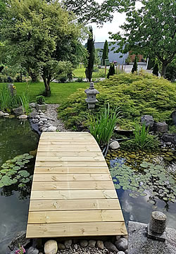 17 Jahre lang hatten sie gehalten: die Bogenbrücke mit Geländer und der Steg aus Holz. Beides war in letzter Zeit eher zum Schandfleck verkommen, als dass es ein schöner Blickfang war. Und die morsch gewordenen Latten ermunterten einen schon gar nicht mehr zum Draufstehen beziehungsweise drüber Gehen. Deshalb erfolgte diesen Sommer der Abbau bis aufs Grundgerüst, das noch brauchbar war. Mit knappen 300 Franken Materialkosten fürs Fichtenholz und die Schrauben sowie einigen Stunden „do-it-yourself“ durch meinen Lebenspartner ist beides wieder eine Freude zum Anschauen und erfüllt auch wieder den ursprünglichen Zweck. Wir entschieden uns, bei der Brücke aufs Geländer zu verzichten, sie dafür etwas breiter zu gestalten, was bei der Teichgrösse besser wirkt.Es ist auch allerhöchste Zeit, die dem Filter vorgelagerte UVC-Lampe auszuwechseln. Am besten tut man dies jährlich, spätestens aber alle zwei Jahre. Durch die ultraviolette Bestrahlung werden die Erbinformationen der Schwebealgen zerstört; dadurch können sie sich nicht weiter vermehren. Und schliesslich sind da noch die Filtermatten, die etwa jede Woche einmal gereinigt werden.
