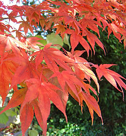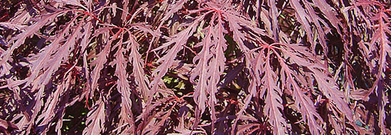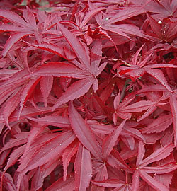 Laub: tief eingeschnitten; dunkelrot, leuchtend rote Herbstfärbung