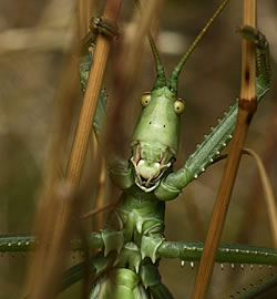 Wyss: Welches ist dein Lieblingsinsekt und wo lebt es?Bährahm Alagheband: Hui, das wechselt ständig. Der Sandlaufkäfer ist faszinierend, weil er unglaublich schnell rennen kann. Wäre es ein Mensch, wären es mehrere 100 Kilometer pro Stunde. Oder die Grosse Sägeschrecke (Foto), eine riesige Heuschrecke von 8 cm und mehr, die andere Insekten frisst und sich ohne Männchen fortpflanzen kann.