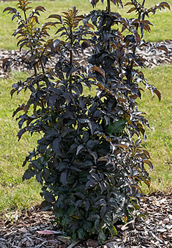 Als weitere Besonderheit möchten wir ‘Black Tower®’ – einen Säulenholunder – erwähnen. Das aussergewöhnliche Laubgehölz wächst breit säulenförmig und wird bis zu 3 m hoch. Die auffällig gefiederten Blätter mit gezähntem Rand sind im Austrieb grünrot, danach glänzend schwarzrot und erreichen später eine schöne grünrote Herbstfärbung.