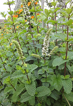 Das zu grossen Teilen kühl-feuchte Frühlingswetter hatte es in sich: Vieles ist nur zögerlich gewachsen, nicht so die Minzen. Sie mögen diese Verhältnisse und wachsen sehr stark − manche zu stark.
