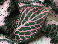 Fittonie, Mosaikpflanze (Fittonia verschaffeltii) ‚Mosaic Pink Forest Flame‘