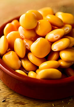 Erntezeit ist von August bis Mitte September, sobald die Hülsen abtrocknen und braun sind. Die essbaren Samen lassen sich dann sehr einfach aus der Schote drücken. Die Verwendung ist vielseitig. Aus den Samen mit ihrem nussigen Geschmack werden Snacks (Lupini), Mehl oder Lupinen-Tofu (Lopino) hergestellt. Auch als koffeinfreien Kaffeeersatz dienen Speiselupinen. Die ballaststoffreichen Süsslupinen bilden eine ideale Basis für Vegi-Burger, schmecken ausgezeichnet als Gemüsebeilage, in einem gemischten Salat sowie in Eintöpfen und Gratins. Mit Lupinenmehl können auch Saucen gebunden werden. Süsslupinen liefern neben reichlich Eiweiss wertvolle Vitamine (B1, A), Kalium, Kalzium und Magnesium. Vor der Verwendung weicht man sie idealerweise über Nacht ein. Grundsätzlich kann man Süsslupinen roh essen, doch gekocht schmecken sie besser. Die Garzeit beträgt eine gute Stunde.