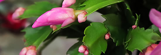 Bei richtiger Behandlung blüht der Weihnachtskaktus Jahr für Jahr zur Weihnachtszeit und kann sogar mehrmals im Jahr Blüten hervorbringen. In der Hauptblütezeit (November bis Januar) regelmässig mit kalkarmem nicht zu kaltem Wasser giessen und von März bis September alle 2 Wochen düngen. Spätestens ab September sollte die Pflanze in einem hellen, kühlen Raum stehen (unter 20 ° C). Ab Ende September erfolgt eine mindestens 6-wöchige Ruhephase, d. h. trocken halten und kühler stellen. Wenn die Knospen sichtbar werden, holt man den Weihnachtskaktus im November/Dezember wieder ins warme Zimmer.Damit er die Knospen nicht abstösst, stellt man ihn so zum Licht, wie er auch im kühleren Raum gestanden hat.