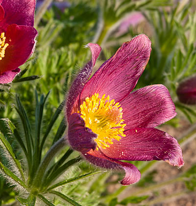 Mit dem stark gefiederten Laub, den grossen seidigen Blüten und den strubbeligen Samenständen zählt die Küchenschelle zu den schönsten Alpenpflanzen. Sie ist vom Frühling bis zum Herbst attraktiv in Steingärten oder in Pflanzentrögen.