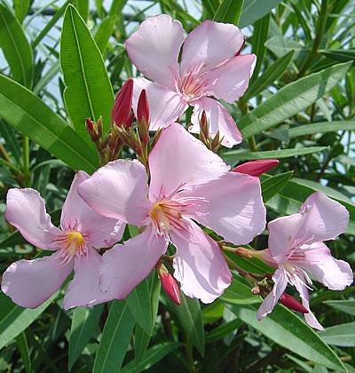 Oleander sind wahre Sonnenkinder und so richtig durstige Gesellen. Wird diese Mittelmeerpflanze zu trocken gehalten, lässt ihre Blühfreudigkeit nach. Und in kühlen, regenreichen Sommern kann es sein, das sich die Knospen nicht entfalten. Bekommt der der Oleander viel pralle Sonne, dankt er es uns mit sehr reicher Blüte und bringt so eine mediterrane Atmosphäre auf die Terrasse.