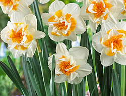 Narzisse ‚Peach Swirl‘Sehr dekorativ. 30 cm hoch. Gefüllt und mittelfrüh blühend. Zum Verwildern und auch zur Gefässbepflanzung geeignet.