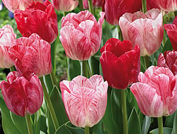 Tulpe ‚Hémisphère‘Einzigartiges Farbenspiel der Blüte, marmoriert von dunkelrosa bis zu weiss. Einfach und mittelfrüh bis spät blühend. 35 cm hoch. Ist auch als Schnittblume geeignet.