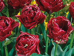Tulpe ‚Antraciet‘Eine wahre Augenweide sind die grossen stark dunkelroten gefüllten Blüten dieser Tulpe. Sie ist spät blühend und wird 35 cm hoch.