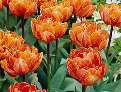 Tulpe ‚Orange Princess‘Die in verschiedenen Orangetönen marmorierte Sorte wirkt sehr dekorativ. Mit ihrer Höhe von 35 cm ist die spät und gefüllt blühende Tulpe auch als Schnittblume geeignet.