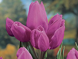 Tulpe ‚Purple Bouquet‘Der Name ist hier Programm. Wer auch nur einen Stängel der mehrtriebigen Tulpe schneidet, hat bereits ein kleines Sträusschen für die Vase. Die violette mittelfrüh und einfach blühende Tulpe wird 35 cm hoch.