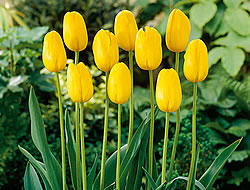 Tulpe ‚Roi du Midi‘Wahrlich königlich thronen die leuchtendgelben Blütenköpfe auf langen Stängeln. Diese einfach und spät blühende Tulpe wird stolze 65 cm hoch. Sie ist auch als Schnittblume geeignet.