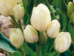 Tulpe ‚Ivory Floradale‘Eine äusserst elegante Erscheinung ist die diese einfach blühende 60 cm hohe Tulpensorte. Sie blüht elfenbeinfarbig, mittelfrüh und ist auch eine sehr schöne Schnittblume.
