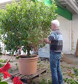 Im Überwinterungspreis inbegriffen ist die Platzmiete im Gewächshaus, fachgerechte Pflege wie giessen, düngen, schneiden und wo nötig Pflanzenschutz-Spritzungen. Gegen separate Verrechnung topfen wir auch Pflanzen um und übernehmen den Transport.