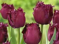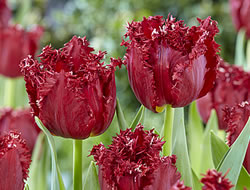 Crispa Tulpe ‚Gorilla‘Ihr wundervolles Burgunderrot und die gefransten Blütenblätter machen die Tulpe ‘Gorilla‘ einfach unwiderstehlich. Die mittelfrühblühende Sorte wird 35 cm hoch und bietet sich deshalb auch als Schnittblume an.