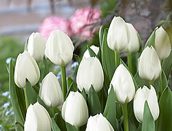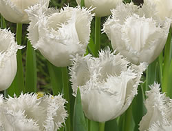 Tulpe ‚Royal Virgin‘Eine sehr elegante Erscheinung ist die Tulpe ‘Royal Virgin‘ mit ihren reinweissen Blüten. Es ist eine einfach- und mittelfrühblühende Sorte, die eine Wuchshöhe von 40 cm erreicht. Sie ist auch sehr gut als Schnittblume geeignet.