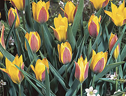Wildtulpe ‚Kolpakowskiana‘Die gelb-rote Schönheit ‘Kolpakowskiana‘ macht sich sehr gut in Steingärten. Diese frühblühende Sorte wird lediglich 10 cm hoch und ist eine ideale Sorte zum Verwildern.
