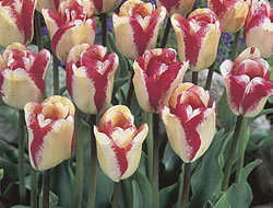 Tulpe ‚Mata Hari‘Die einfach- und spätblühende Tulpen-Sorte ‘Mata Hari‘ begeistert mit ihrer malerischen Farbzeichnung in Weiss und Dunkelrosa. Diese Tulpe erreicht eine stattliche Höhe von 50 cm und ist daher auch eine attraktive Schnittblume.