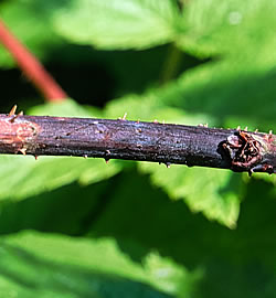 Eine häufige Krankheit bei Himbeeren ist die Rutenkrankheit, auch Rutensterben genannt. Diese zeigt sich durch zu Beginn bräunlich-violett verfärbte, später silbrig-graue aufreissende absterbende Rindenabschnitte. Befallene Triebe sollten unverzüglich entfernt werden. Nach der Ernte schneidet man alle Triebe komplett zurück, wenn möglich bis etwas unterhalb der Erde. Wichtig: Kranke Pflanzenteile gehören nicht auf den Kompost oder in den Grüncontainer, sondern in die Kehrichtabfuhr. Vorbeugend können eine Mulchschicht (z.B. aus Schilfschnitzel) sowie eine gute Nährstoffversorgung wirken. Auch ein genügend grosser Pflanzabstand (mind. 50 cm) ist hilfreich.